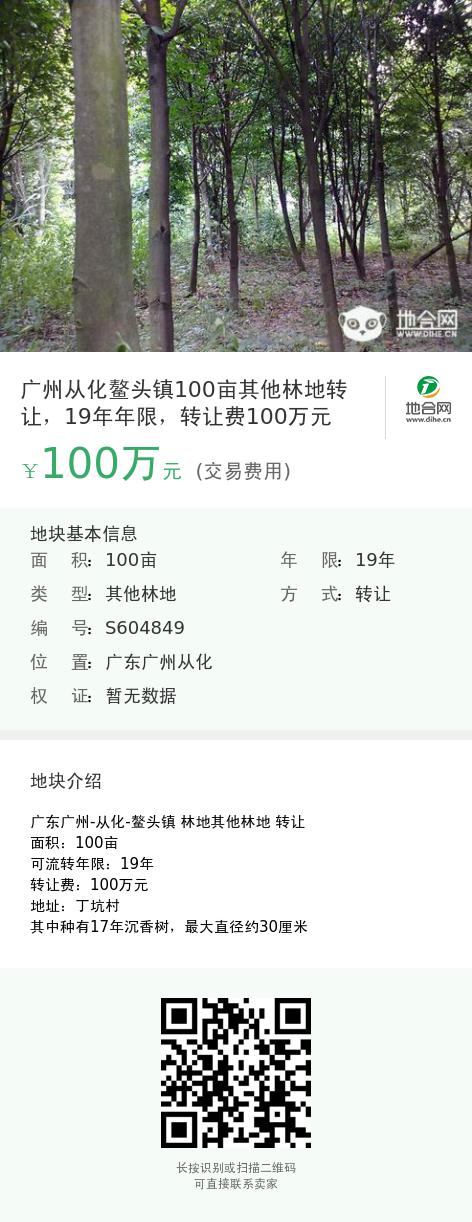 广州从化鳌头镇100亩其他林地转让,19年年限,转让费100万元